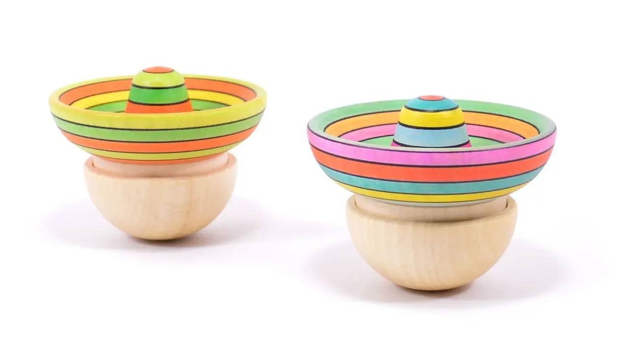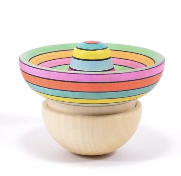 Zodra je deze Sombrero aanraakt begint hij te schommelen. Is je kindje oud genoeg dan kan hij draaien als een tol. De kleurtjes fascineren het kind enorm en dit speelgoed is zo simpel en toch zo aantrekkelijk!