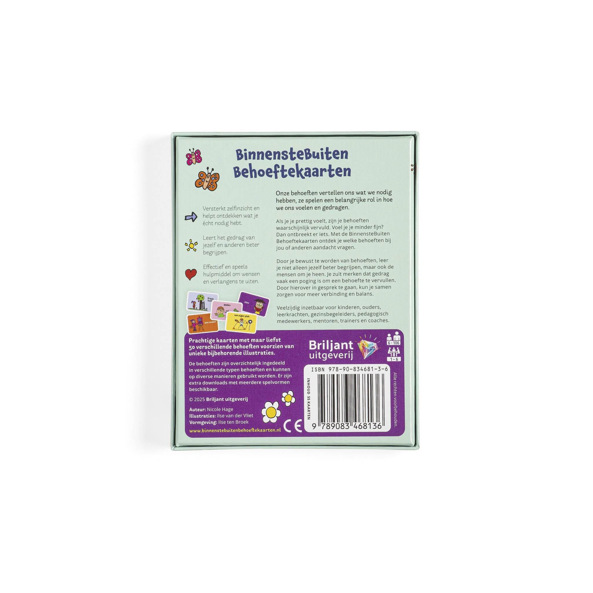 Met de BinnensteBuiten Behoeftekaarten ontdek je welke behoeften bij jou of anderen aandacht vragen. Door je bewust te worden van behoeften, leer je niet alleen jezelf beter begrijpen, maar ook de mensen om je heen. Je zult merken merken dat gedrag vaak een poging is om een behoefte te vervullen. Door hierover in gesprek te gaan, kun je samen zorgen voor meer verbinding en balans.