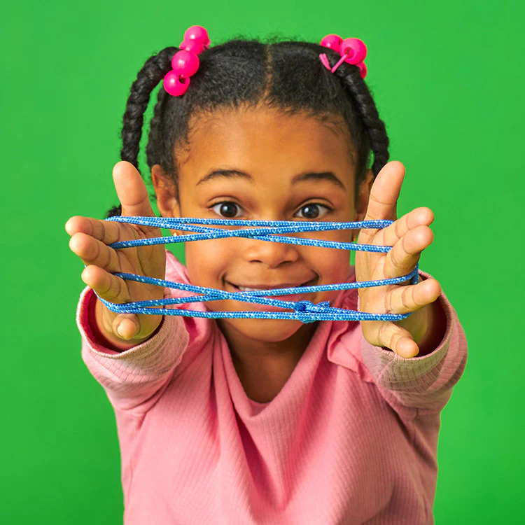 Touwspelletjes stimuleren creativiteit en vingervaardigheid, terwijl het kinderen ook aanmoedigt om samen te spelen. Een coöperatieve bezigheid en perfecte manier om sociale interactie te bevorderen en de verbeelding te prikkelen.