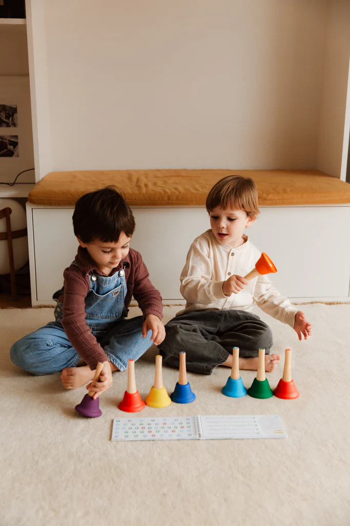Klank, ritme en coördinatie! Deze bellen zijn een fantastische manier om kinderen kennis te laten maken met muziek.Ze zijn al geschikt voor driejarigen en ouder natuurlijk maar een leuk instrument omn al vroeg muziek en klank en ritme aan te leren. Ideaal voor thuis maar ook voor in de kinderopvang en op school!