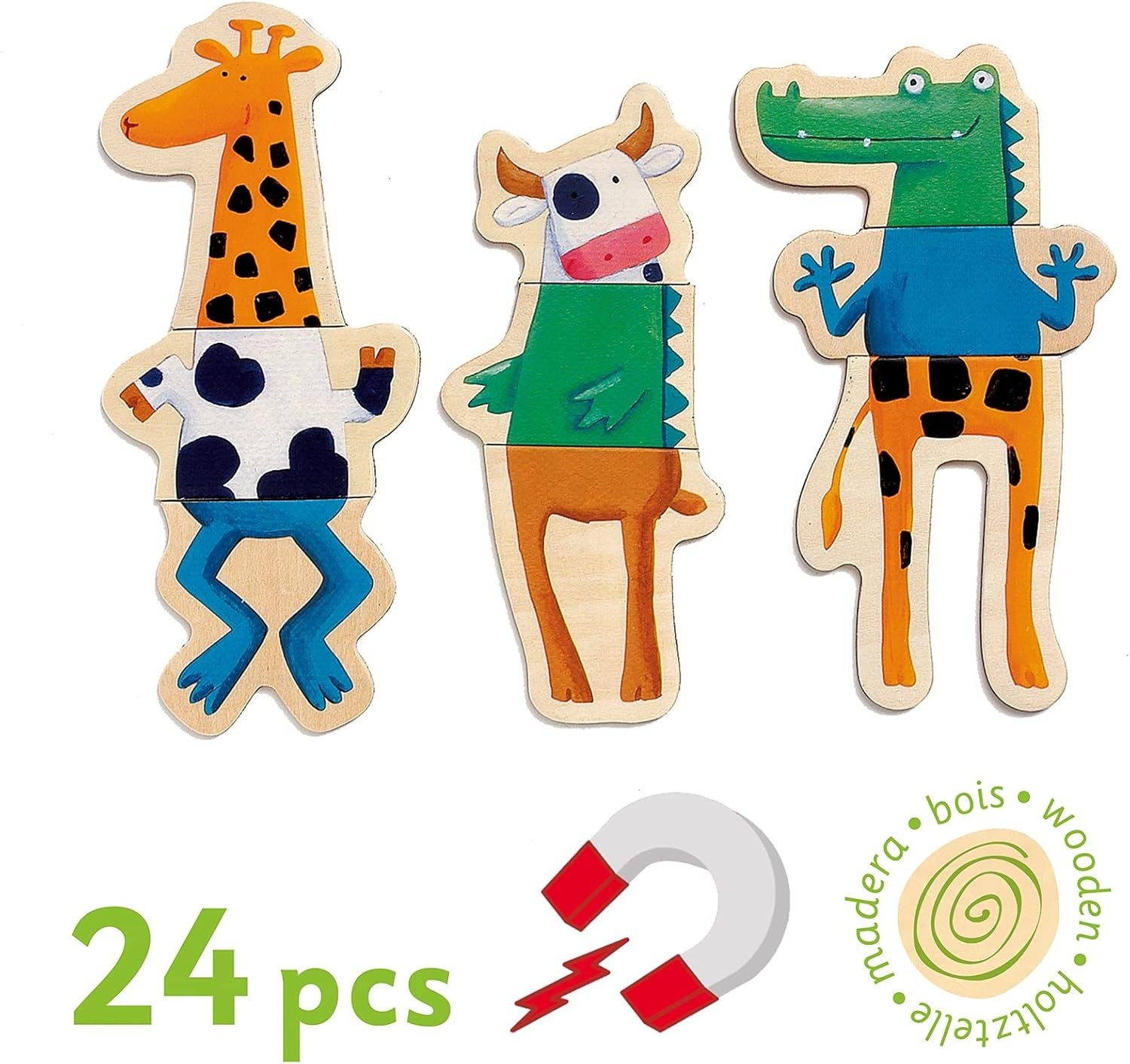 Djeco Magnetics Crazy Animals – Houten Magneetpuzzel (24 stuks), vanaf 2 jaar