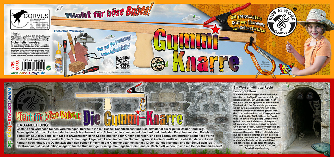 Maak zelf je geweer of pistool om elastiekjes af te schieten. Het is een DIY, Doe het zelf bouwpakket om een pistool voor rubber elastieken te maken! Handvat van beukenhout (ca. 40 cm), voorgevormd handvat van lindehout om zelf te slijpen, met alle toebehoren en gedetailleerde handleiding.