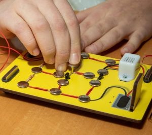 Een introductie tot de basisprincipes van elektronica. Er bestaan veel oude technologieën die het werk van mensen eeuwenlang hebben vergemakkelijkt en die tot op de dag van vandaag hun waarde hebben bewezen. Deze technologieën zijn verwerkt in onze moderne apparaten en machines, maar zijn nauwelijks nog zichtbaar. We maken enkele van deze fundamentele ideeën zichtbaar en tastbaar voor kinderen en moedigen hen aan om te spelen, te experimenteren en verder te denken.