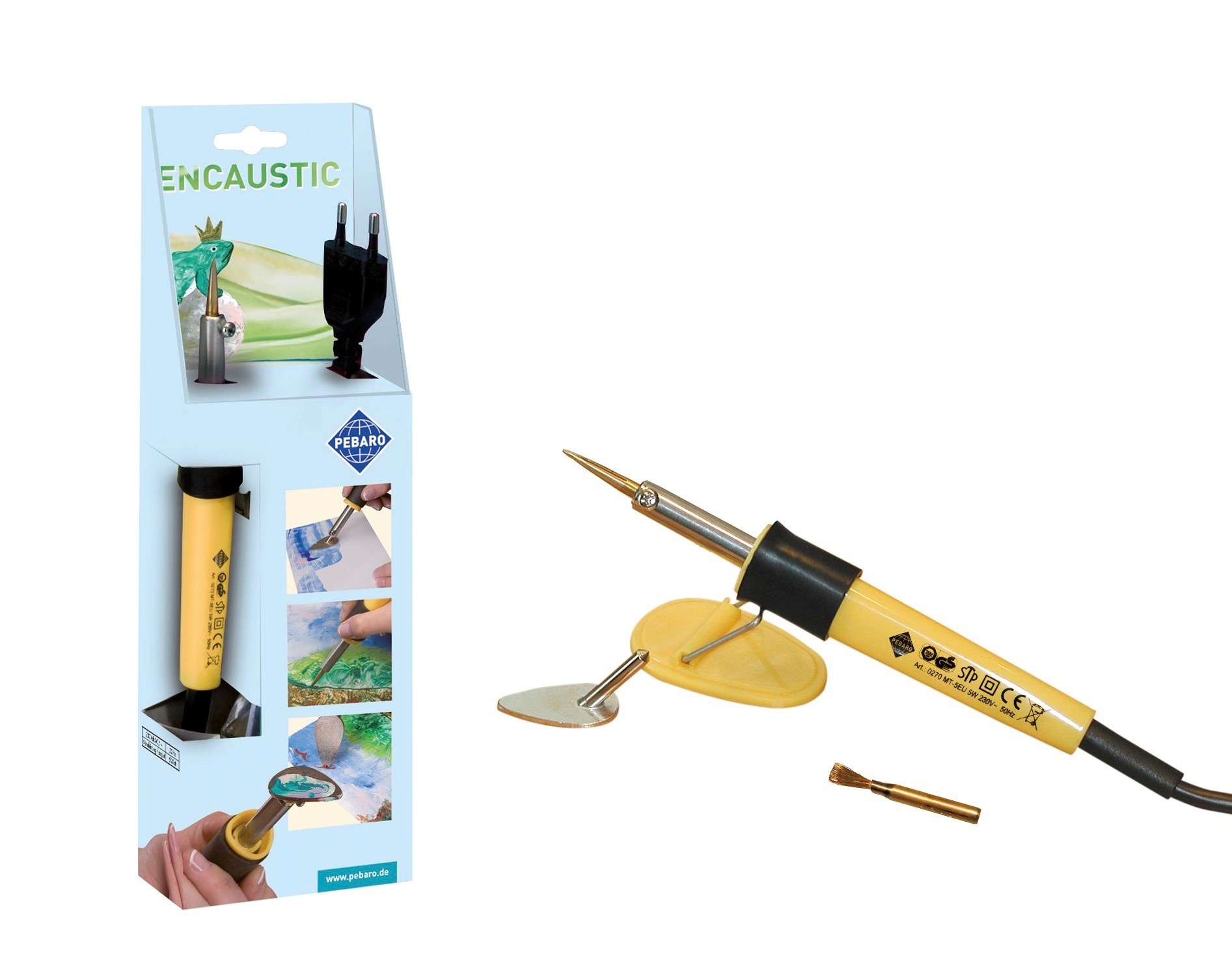 Met een encaustische pen kun je gekleurde was smelten en op een speciaal, niet-absorberend papier aanbrengen om te tekenen, schilderen of te schrijven. De pen is een handig gereedschap voor gedetailleerd werk, zoals landschappen of abstracte kunst