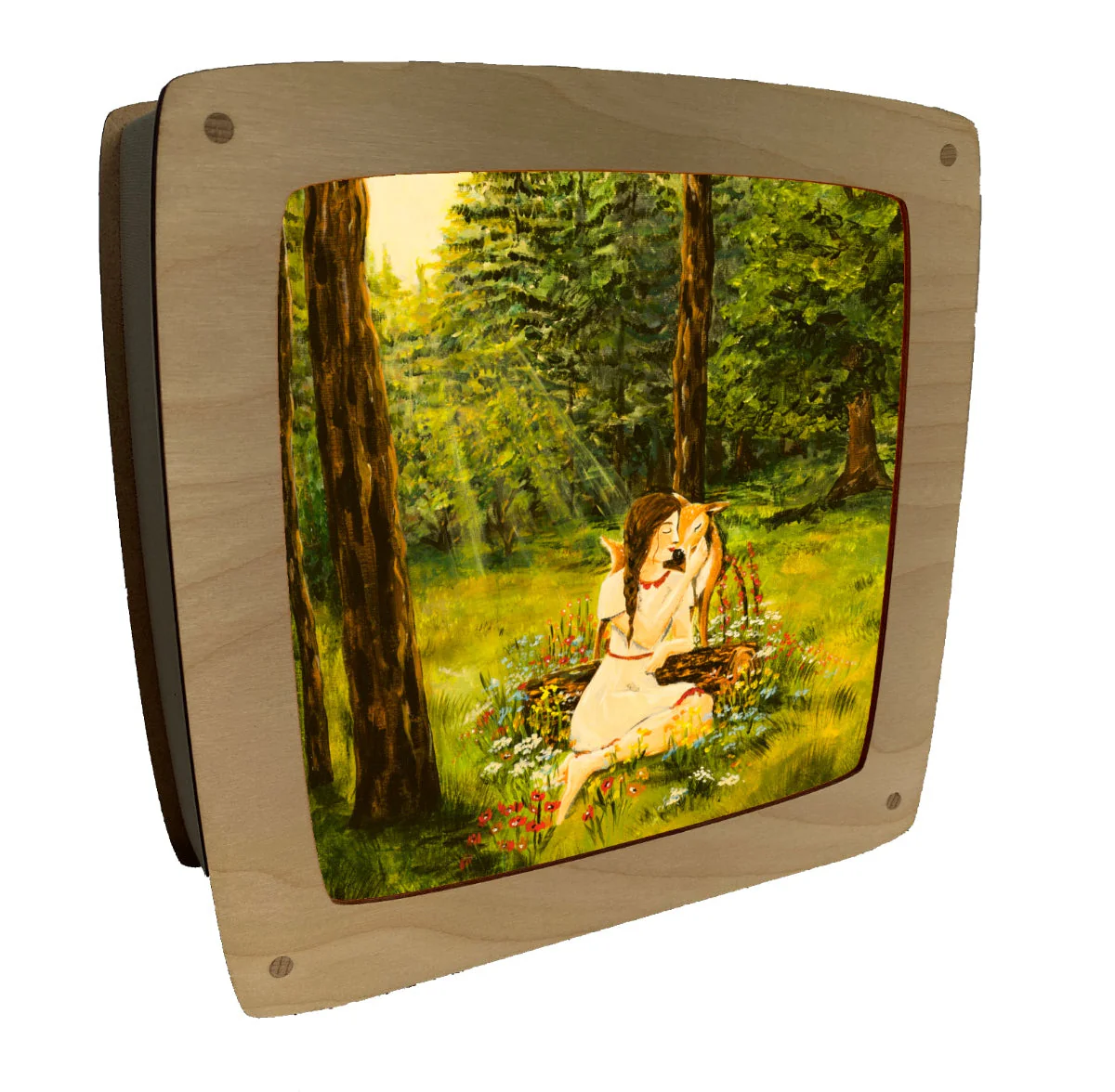 Dit silhouet is afkomstig van Esther Bennink, kunstenares waar wij bij OpzijnPlek in de winkel ook kaarten van hebben. Online tref je de platen/silhouetten voor de toverlamp, puzzels, cosykaartjes, planners en wat andere artikelen. De silhouetten van Esther Bennink zijn gemaakt voor haar eigen lamp, maar passen ook in de Toverlux lamp en andere lampen van dit formaat.