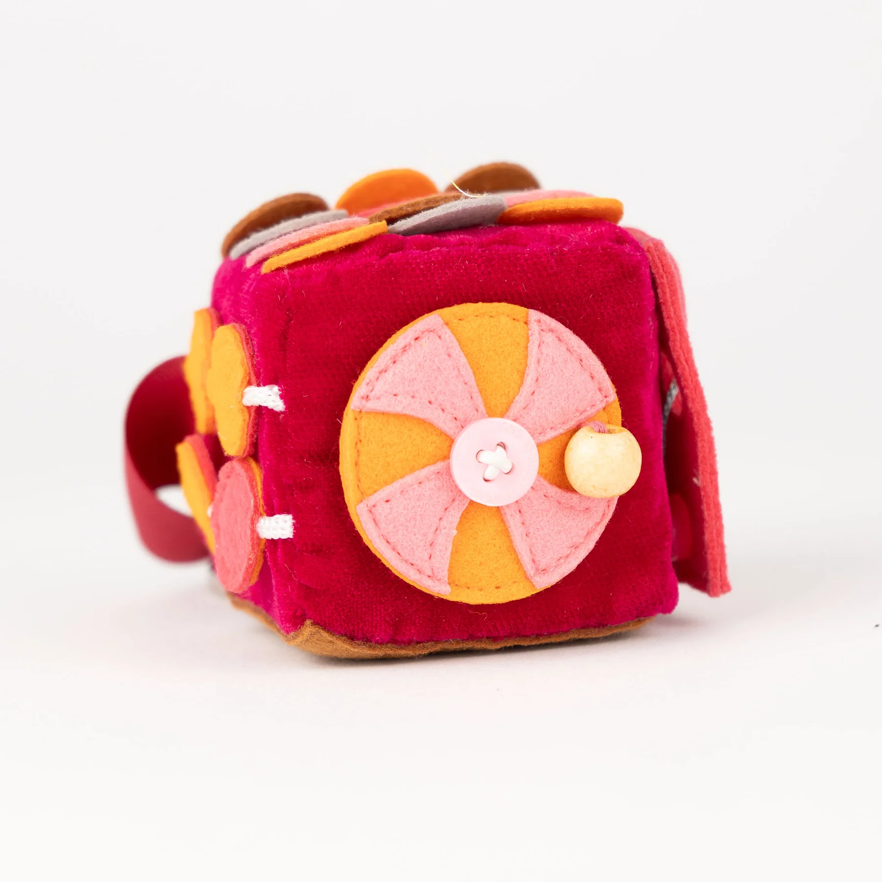 Met rijgkralen, knoopjes, spiraalpatronen, een draaiplateau en andere kleine bewegingsuitdagingen wordt de kubus Ruali een zintuiglijke ervaring voor allerlei gelegenheden Lees meer