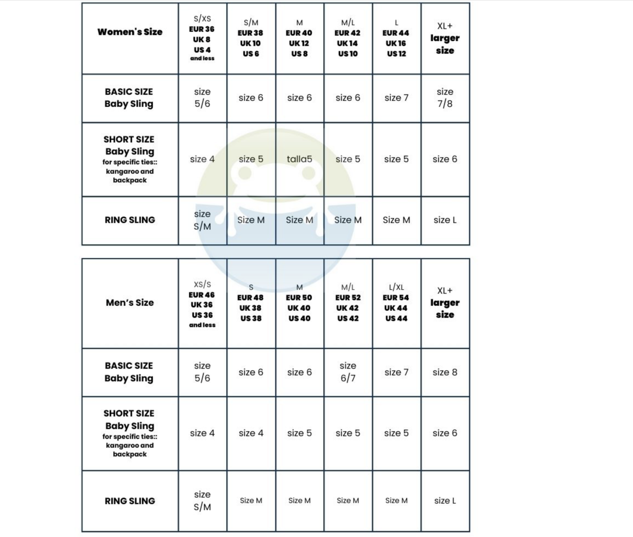 Op de laatste productfoto vind je een tabel om je te helpen bij het kiezen van de juiste maat draagdoek.