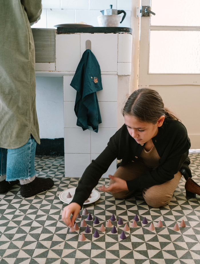Deze set van Grapat bevat 36 losse houten onderdelen in 3 paarstinten. De bolvormige houten onderdelen kunnen in de fantasie van een kind alles worden. Gebruik ze daarnaast voor het leggen van prachtige mandala's en vormen.