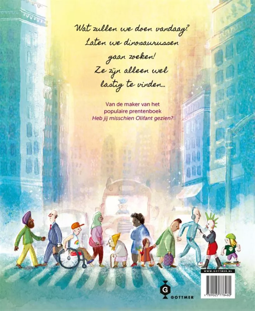 'Heb jij misschien Dinosaurus gezien?' is het tweede prentenboek van kinderboekenmaker David Barrow, die in 2015 als meest veelbelovende kinderboekenillustrator van Groot-Brittannië de Sebastian Walker Award kreeg. Het komische verhaal en de prachtige waterverfprenten maken dit boek een ware traktatie om telkens weer voor te lezen aan kinderen.