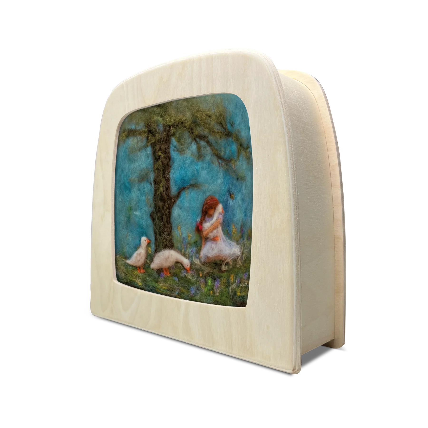 Naarmate de tijd verstreek, verdiepte Annefleurs band met de wol en de natuur zich en ontdekte ze een opmerkelijk talent in zichzelf. Wat begon als een therapeutische uitlaatklep, ontwikkelde zich tot een buitengewone passie. Voor ze het wist, had haar creatieve reis een enorme en diverse collectie wollen schilderijen opgeleverd, elk een bewijs van haar diepgaande emotionele reis en haar door het Waldorf-tijdperk geïnspireerde eerbied voor de natuur.