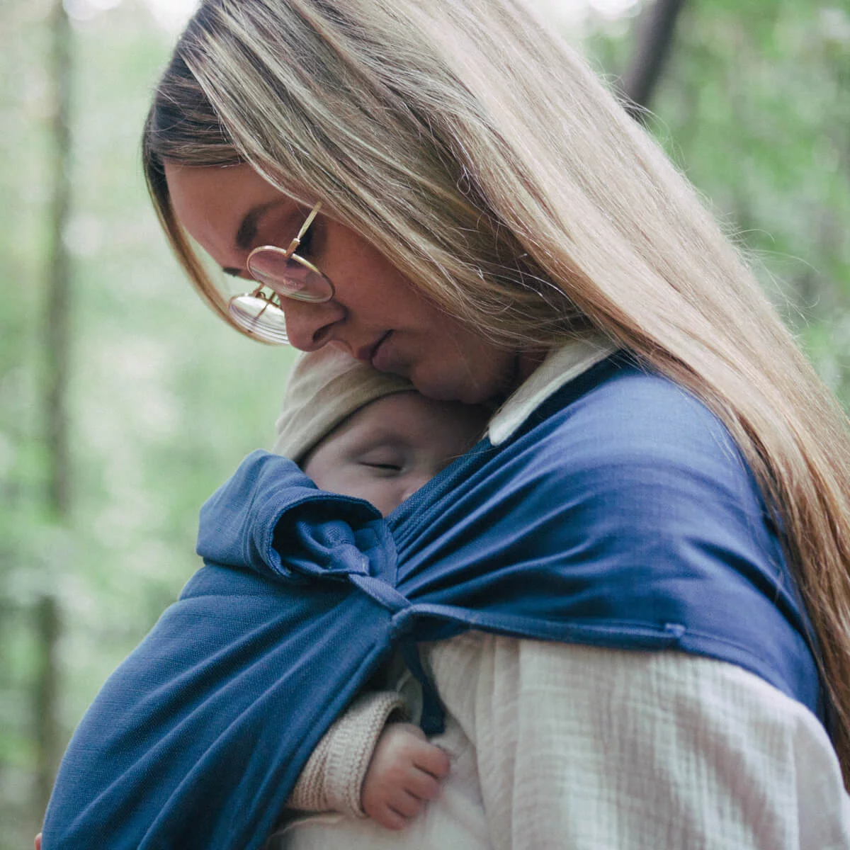 Dankzij de gekruiste, waaiervormige draagbanden wordt het gewicht van de baby verdeeld over je hele rug en de botten. Dit ontlast de gevoelige nekspieren. De lengte van de banden biedt verschillende mogelijkheden om de draagzak vast te knopen.