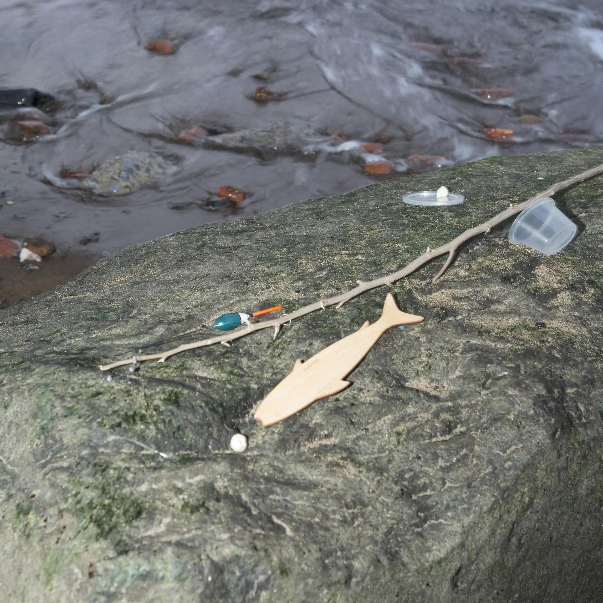 Rol de werplijn af, zoek een stokje en knoop de vislijn eraan vast. Een leuk setje voor onderweg om ergens te gaan vissen Lees meer