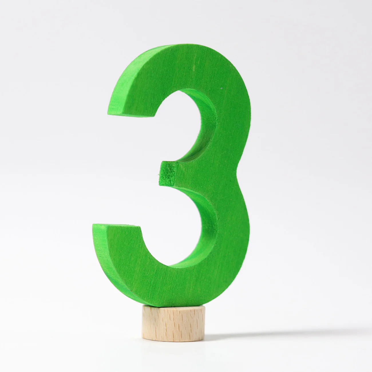 De decoratieve cijfers van 0 tot en met 9 passen met hun stekers in de feestringen, feestspiralen en levenslichtjes van Grimm's. Elk jaar verschijnt het volgende cijfer in een andere regenboogkleur op de tafel van de jarige. Zo ontstaat een unieke familietraditie die jarenlang gekoesterd en geliefd zal worden.