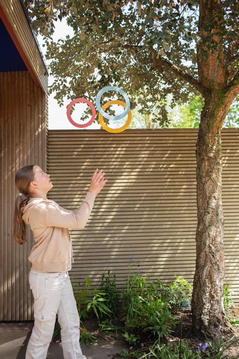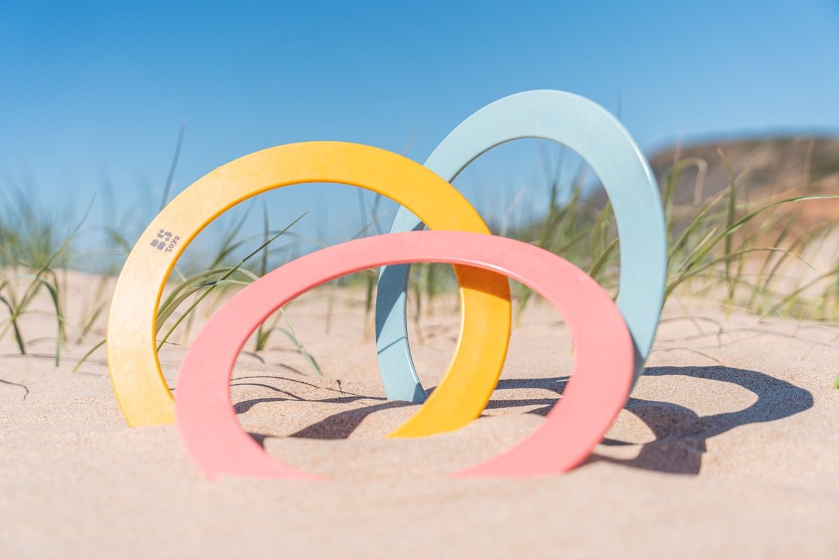 Drie zacht gekleurde bioplastic jongleerringen om lekker buiten of in een grote ruimte te leren jongleren. Lees meer