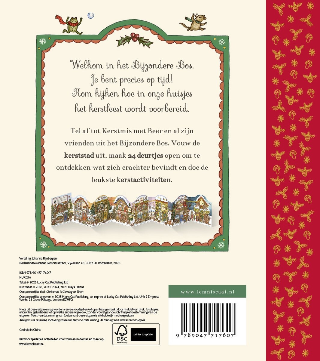 Vouw de stad in het Bijzondere Bos van Beer helemaal uit en zet hem op een mooi plekje in de kamer. Maak iedere dag een vakje open en onthul niet alleen de vrolijkste tekeningetjes, maar ook een vrolijk gedicht dat je vertelt wat je allemaal in aanloop naar kerst kunt doen om helemaal in de stemming te komen.