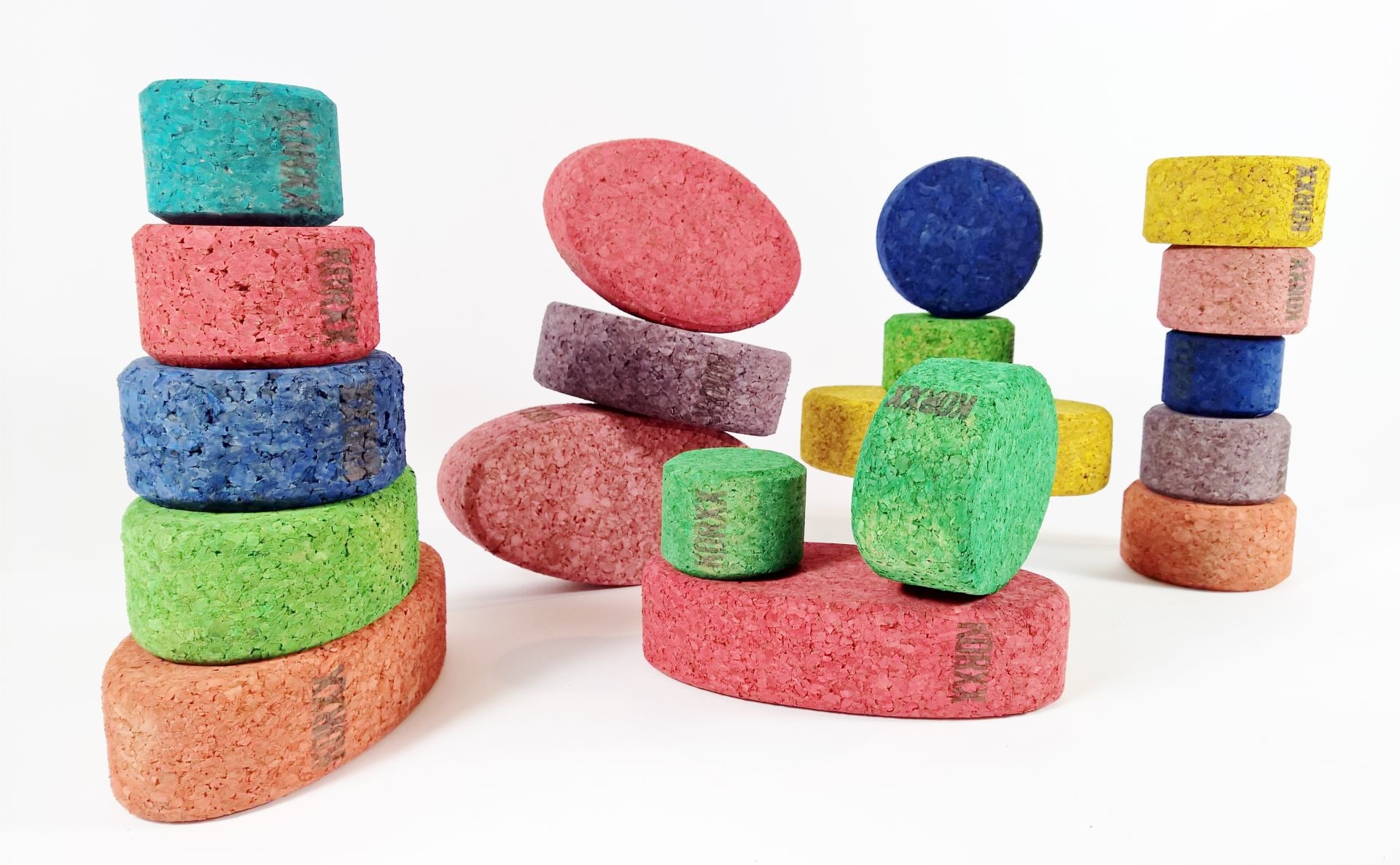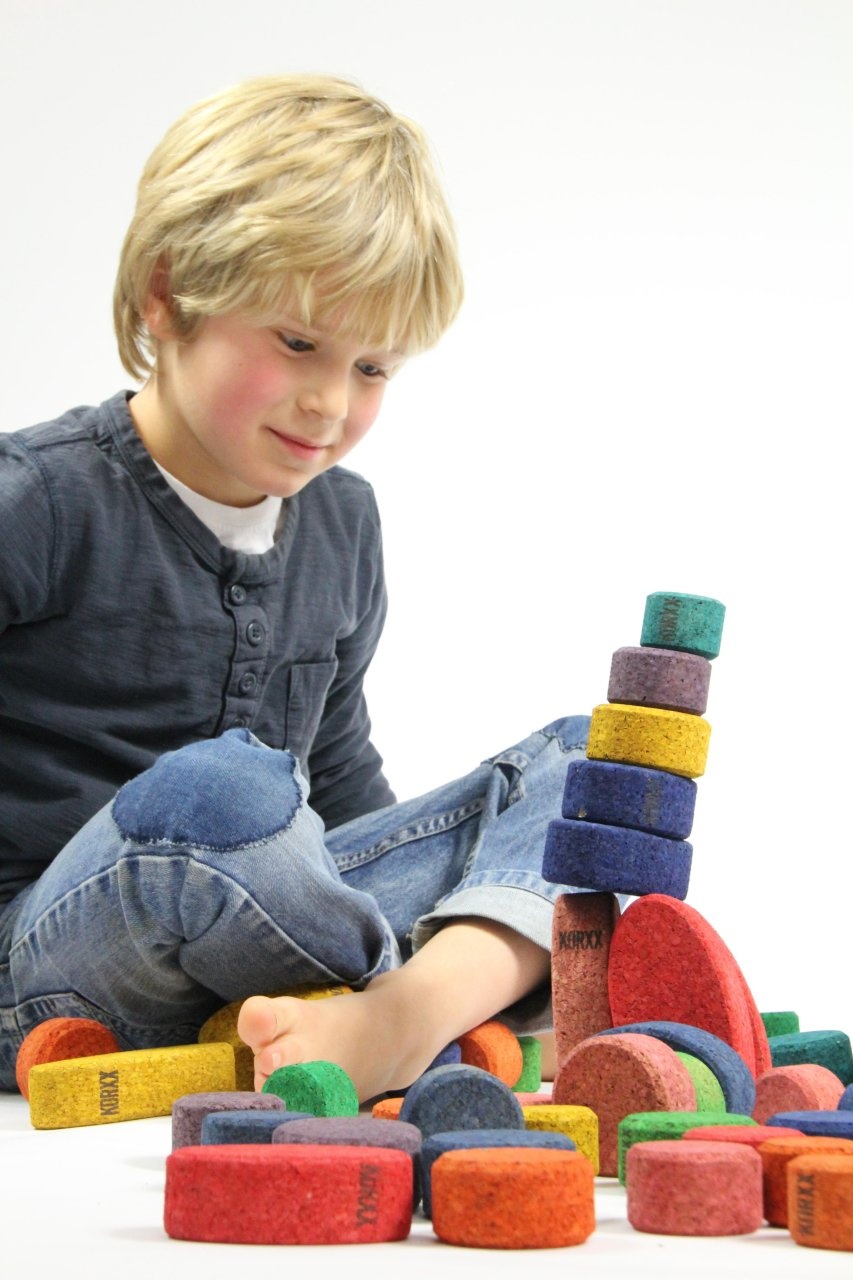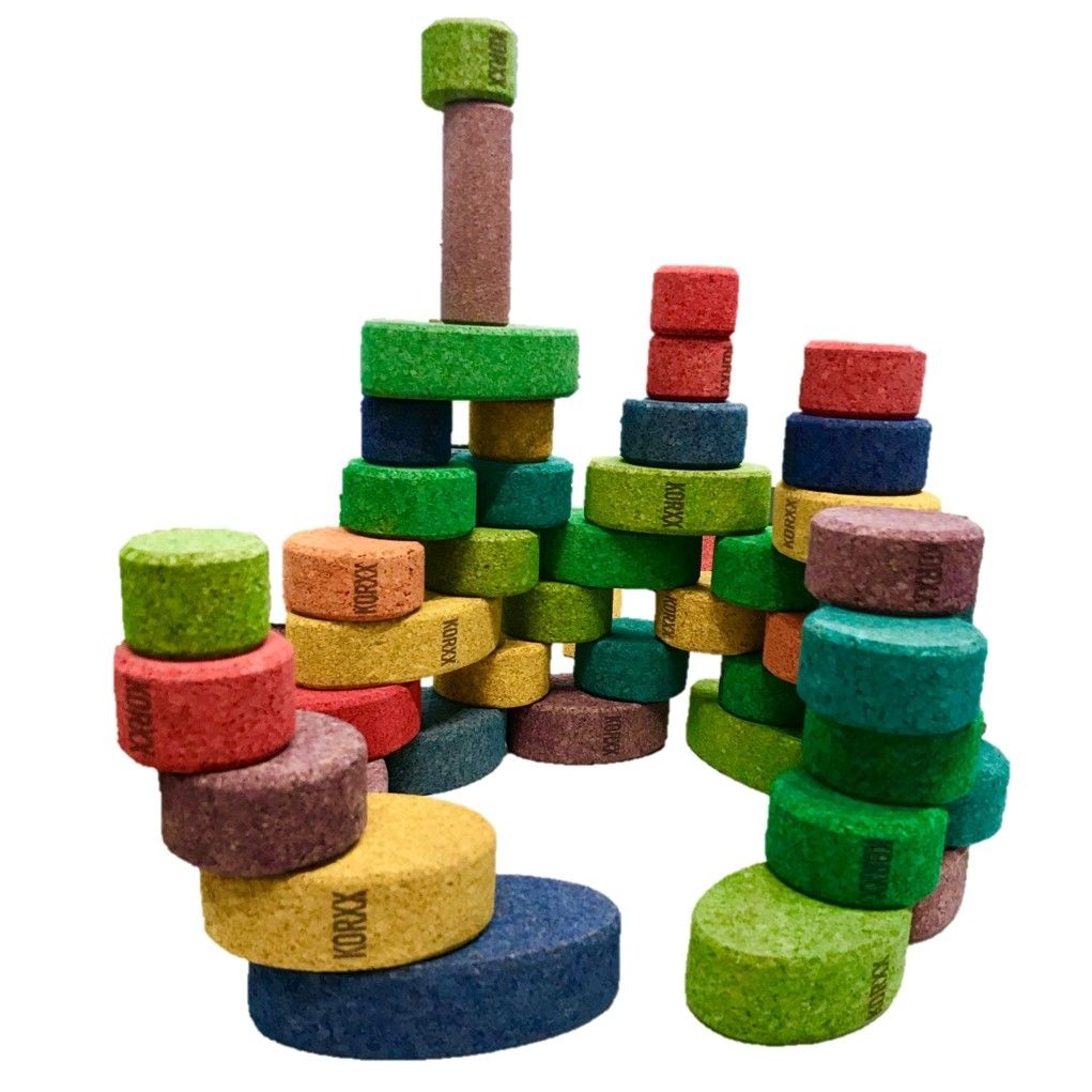Bouwen met afwijkende vormen is heel goed voor het creatief leren denken, het denken in oplossingen en variabel bouwen en daarmee het oefenen van de motoriek door balanceren en stapelen. KORXX is gemaakt van kurk en daardoor licht bouwmateriaal dat zeker zeer geschikt is voor in huiskamers in kinderkamers, flats, wachtkamers, wachtruimten, binnen therapie, onderwijs en opvang.