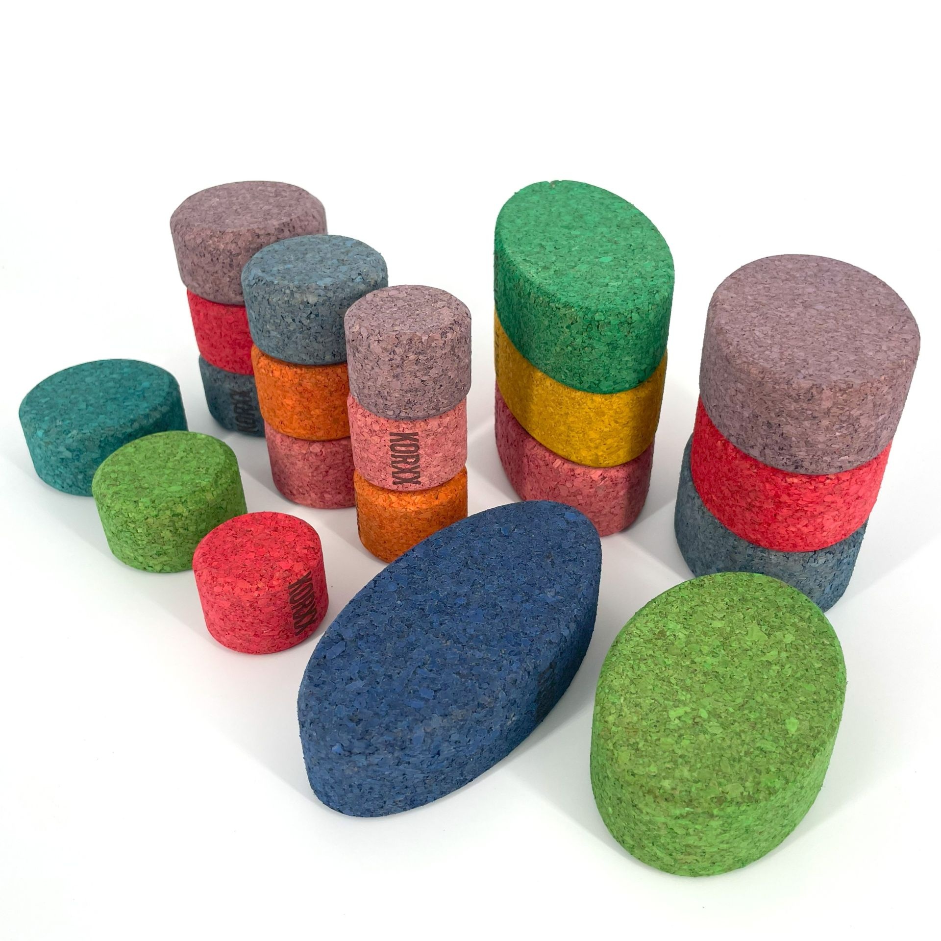 KORXX Kuller C - 20 gekleurde ronde vormen kurk bouwstenen met opbergzak