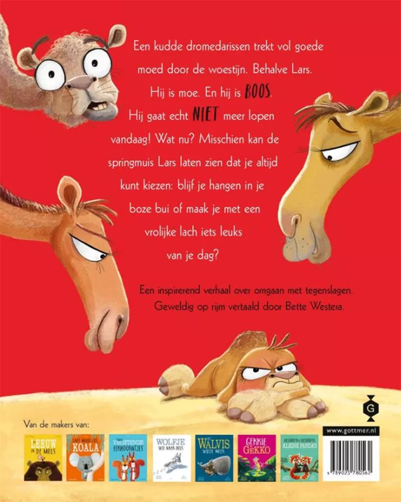 'Lars de dwarse dromedaris' is een vrolijk rijmverhaal en helpt kinderen op een positieve, luchtige manier om uit een negatieve bui te stappen. Bette Westera maakt ook dit keer weer een steengoede vertaling op rijm. Geschikt voor kinderen vanaf 3 jaar.