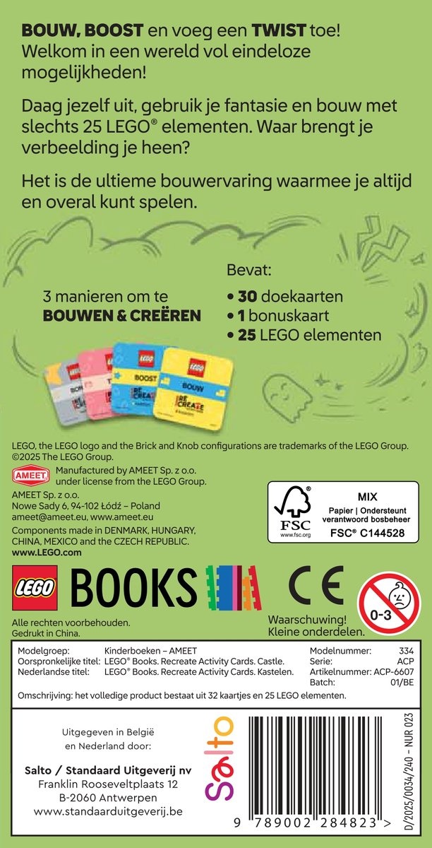LEGO ReCreate bestaat uit Activiteiten kaarten waarin je de opdracht krijgt om met 25 LEGO elementen steeds iets anders te bouwen. Lees meer