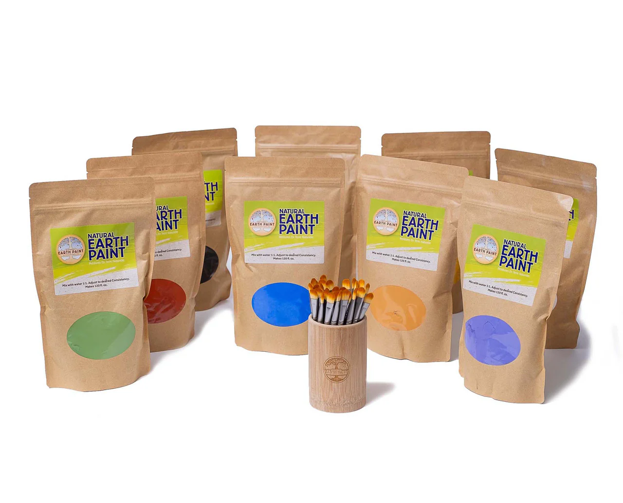 Maak in totaal 18-27 liter verf met deze set van 9 kleuren Natural Earth Paint in bulkverpakking. Elke zak in een kleur maakt ca 360 ml verf fantastische natuurlijke verf of schoolverf voor in jouw klas groep 1 tot en met 8. Deze kinderverf is ook geschikt voor in de kinderopvang.