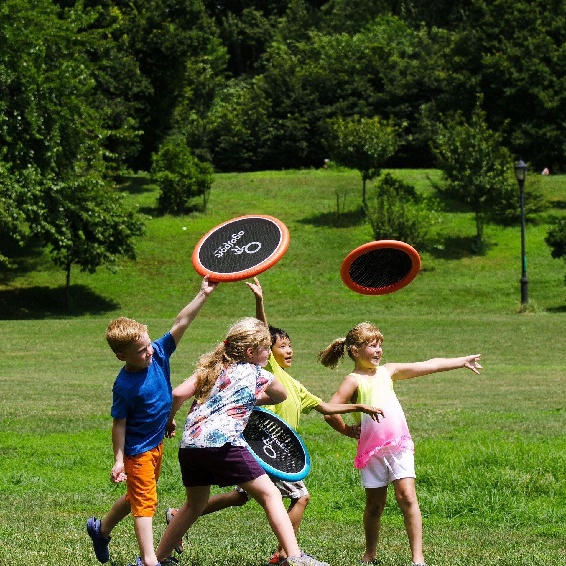 Dit veelzijdige spel is geweldig leuk voor het hele gezin.Of het nu op het strand, in het park of in de tuin is, OgoSport is een must voor elke zomervakantie!De schijf vangt ballen en schiet ze tot wel 45 meter ver, maar kan ook als frisbee gebruikt worden.