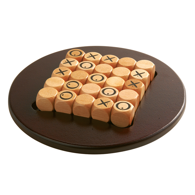25 Zeszijdige Quixo kubussen zijn gevangen op een speelveld van 5 bij 5. Vier zijden van een steen zijn blanco, op één ervan staat een kruis, op de laatste een cirkel. De speler die aan de beurt is, kiest een steen aan de buitenkant met de blanco zijde of zijn eigen symbool naar boven, en duwt deze dan weer in één van de rijen waaruit hij de steen haalde. Zo veranderen er steeds maar een paar stenen van plek.