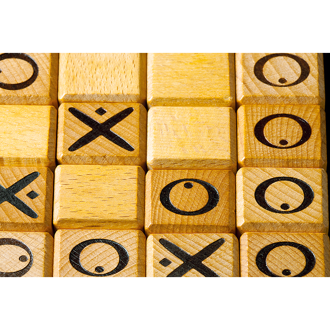 Wie als eerste een horizontale, verticale of diagonale lijn van 5 vormt met zijn eigen symbool, wint het spel!