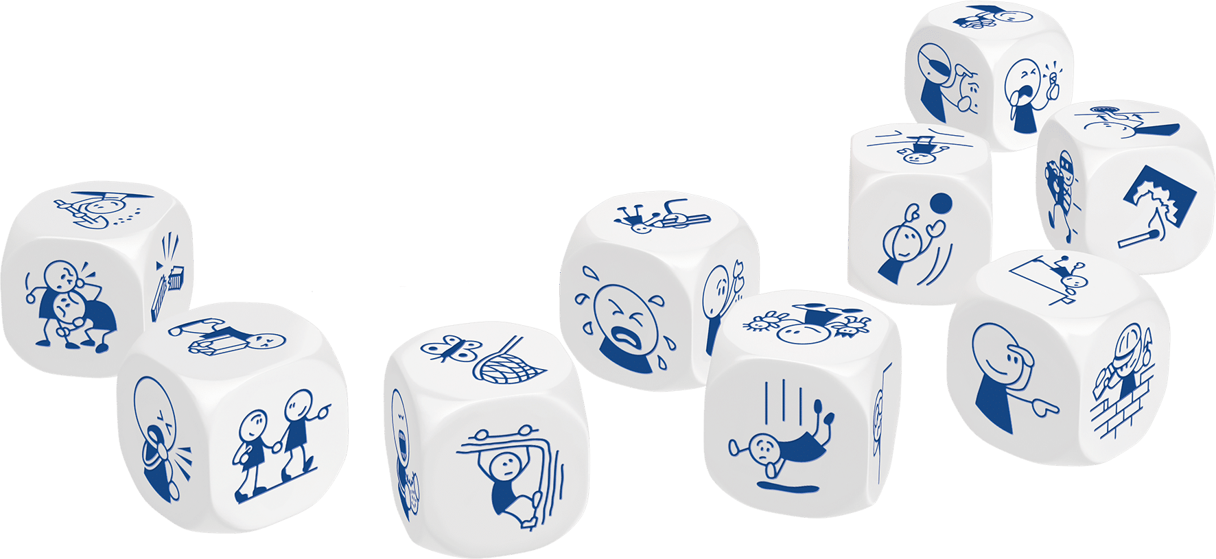 Iedere speler mag op zijn beurt, kijkend naar de afbeelding op de dobbelsteen, het verhaal verder vertellen...het kan niet grappiger, gekker of mooier zijn dan wat je zelf verzint.