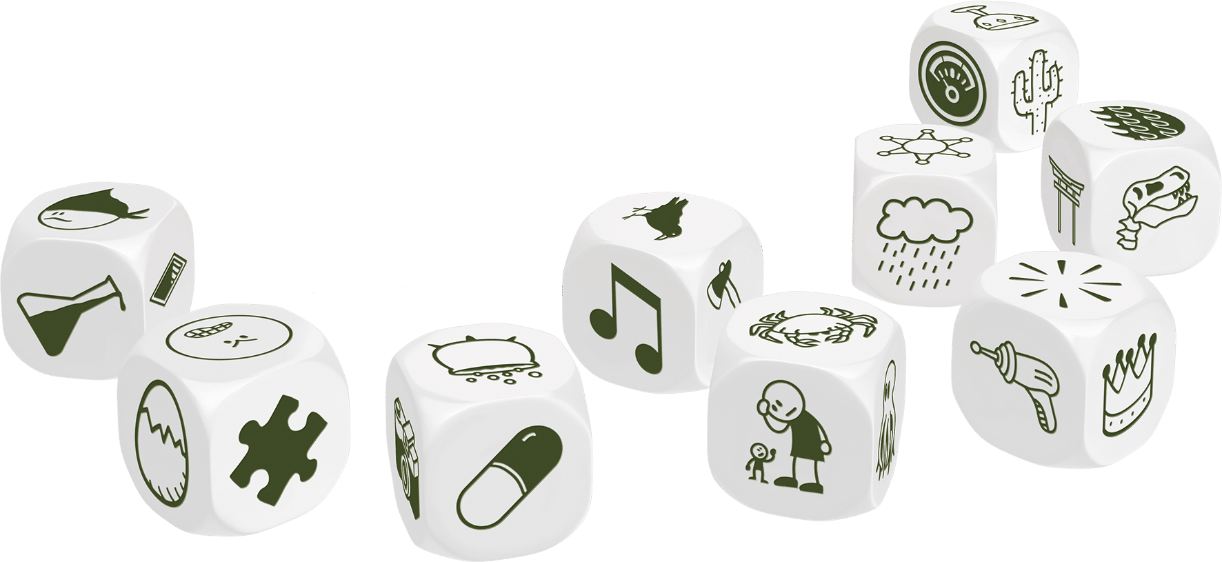 Iedere speler mag op zijn beurt, kijkend naar de afbeelding op de dobbelsteen, het verhaal verder vertellen...het kan niet grappiger, gekker of mooier zijn dan wat je zelf verzint.