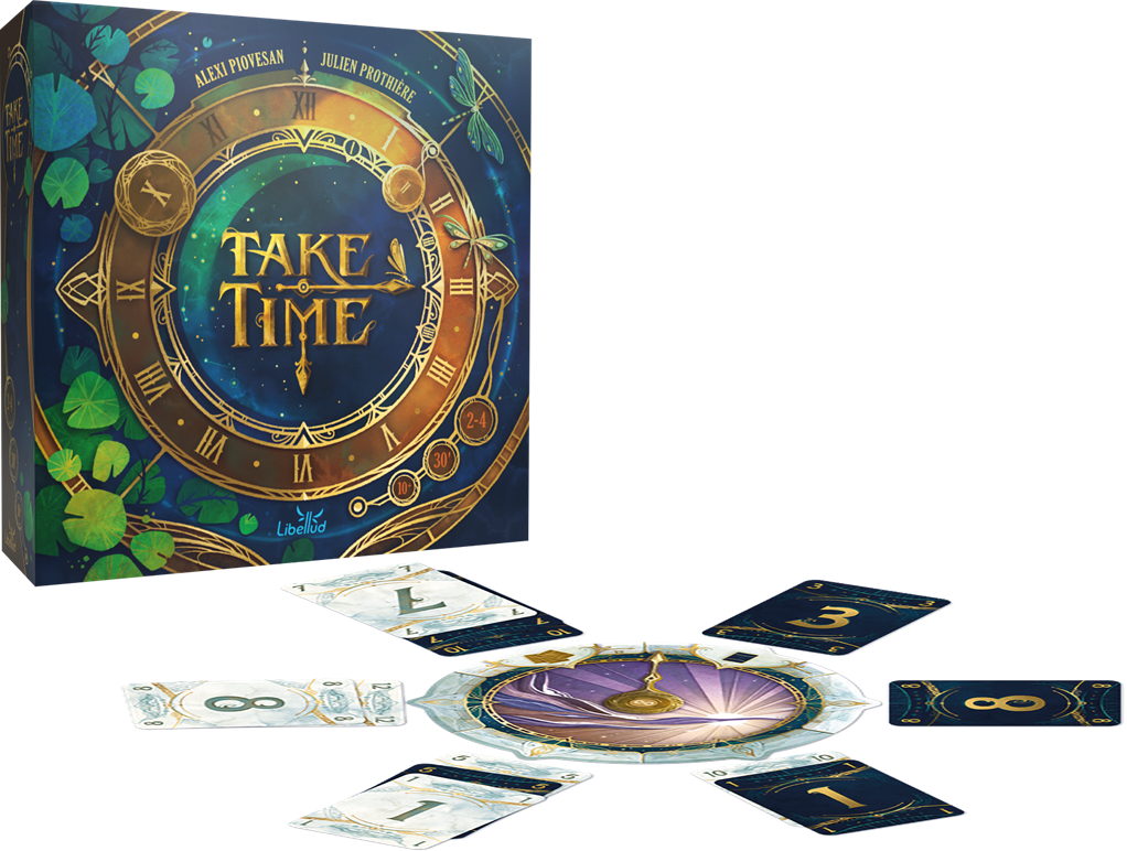 Take Time is een coöperatief spel waarin jullie de puzzels van verschillende klokken moeten oplossen. Hiervoor spelen jullie 12 kaarten gesloten rondom de klok. Jullie weten hoe de kaarten uiteindelijk verdeeld moeten zijn, maar jullie weten niet wat de anderen hebben gespeeld en mogen niet met elkaar praten. Het spel bevat 40 klokken met oplopende moeilijkheidsgraden en verschillende regels. Bereid je voor op een prachtige reis door de tijd!