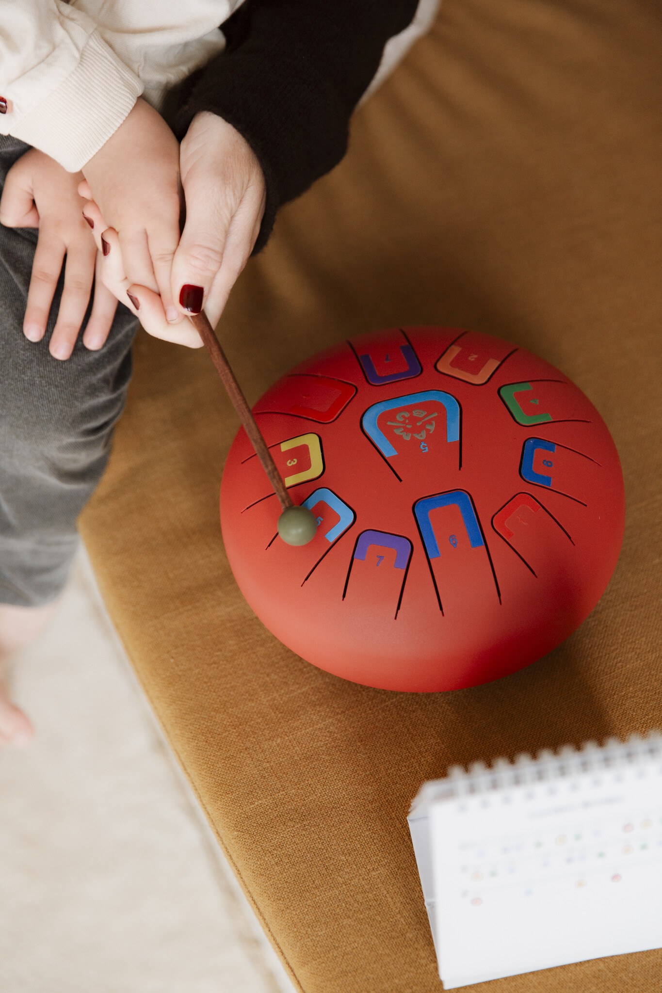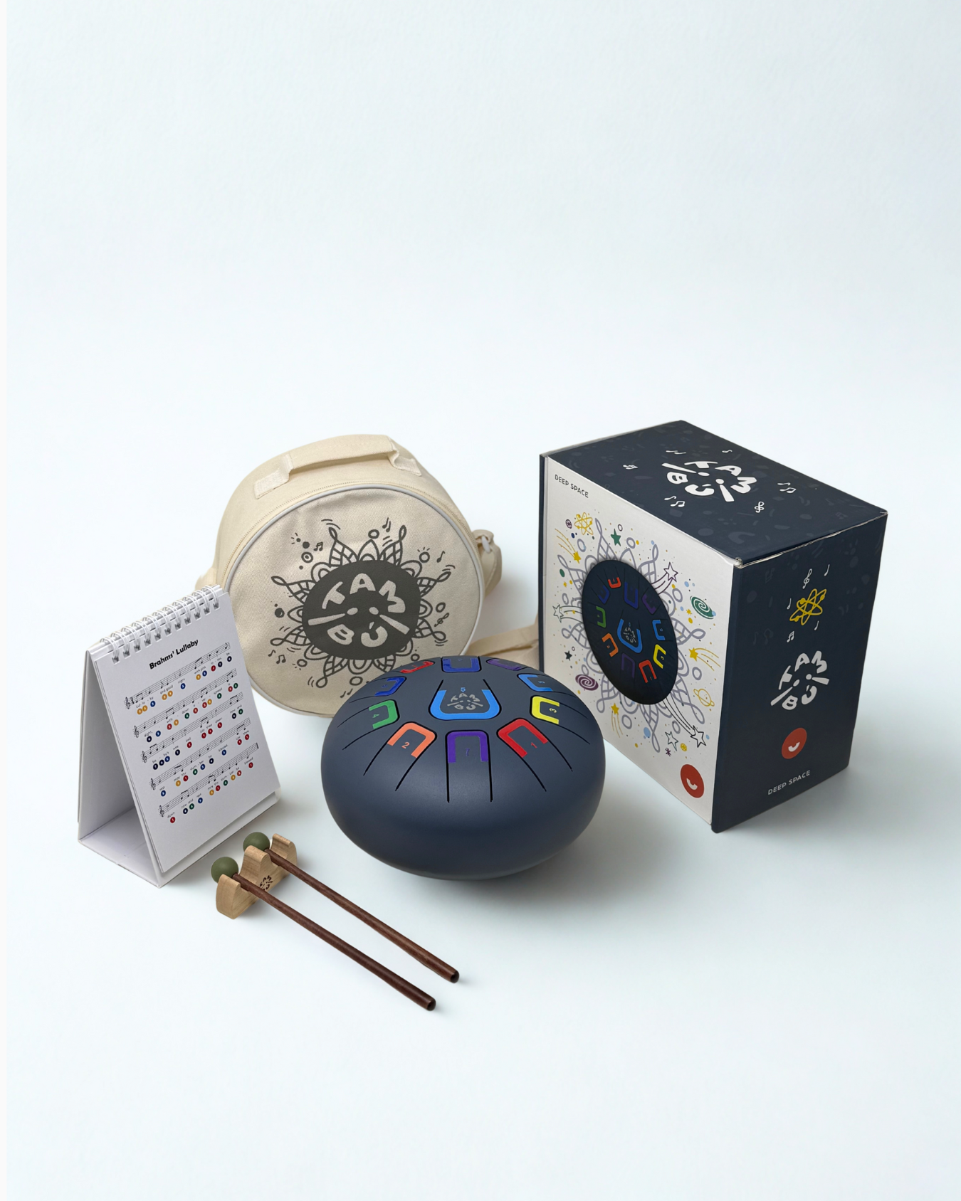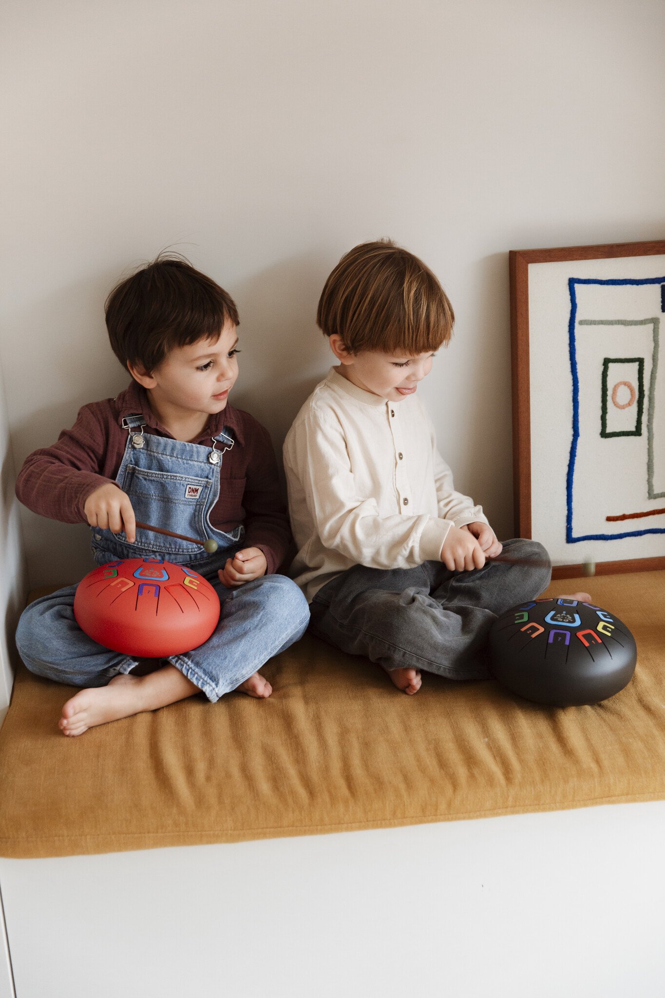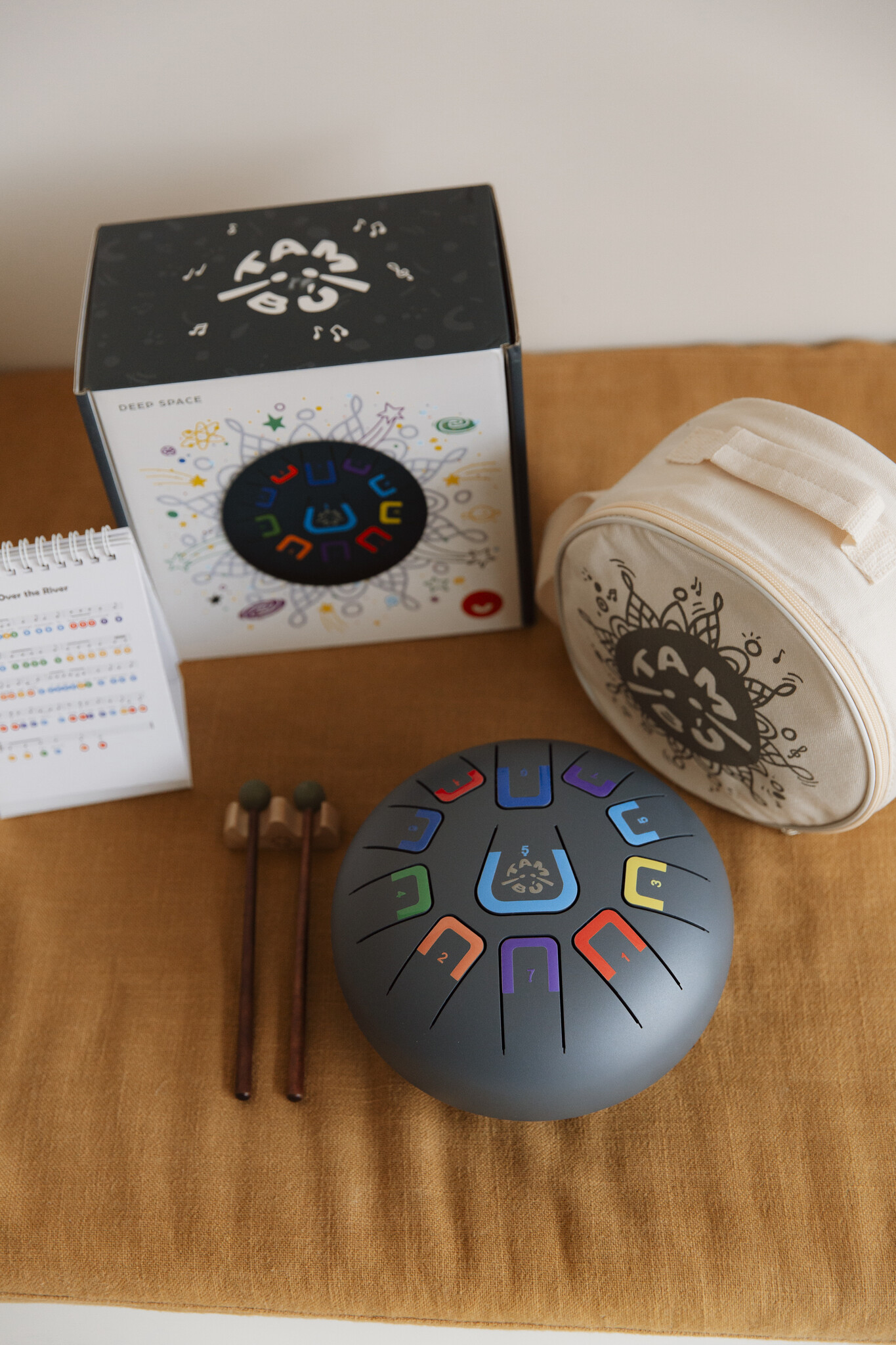 De Steel Tongue Drum is een waardevol muziekinstrument dat je laat kennismaken met de fascinerende wereld van percussie. Deze tongdrum is een soort trommel op verschillende manieren te bespelen. TAMBÚ produceert een verscheidenheid aan tonen die harmonieus op elkaar zijn afgestemd om een langdurig, rustgevend geluid te creëren. Hierdoor ontstaat een omhullende en uiterst ontspannen sfeer. Met de 11 tonen kun je geavanceerde partituren reproduceren en componeren. Elke noot is gemarkeerd met een kleur en een nummer.