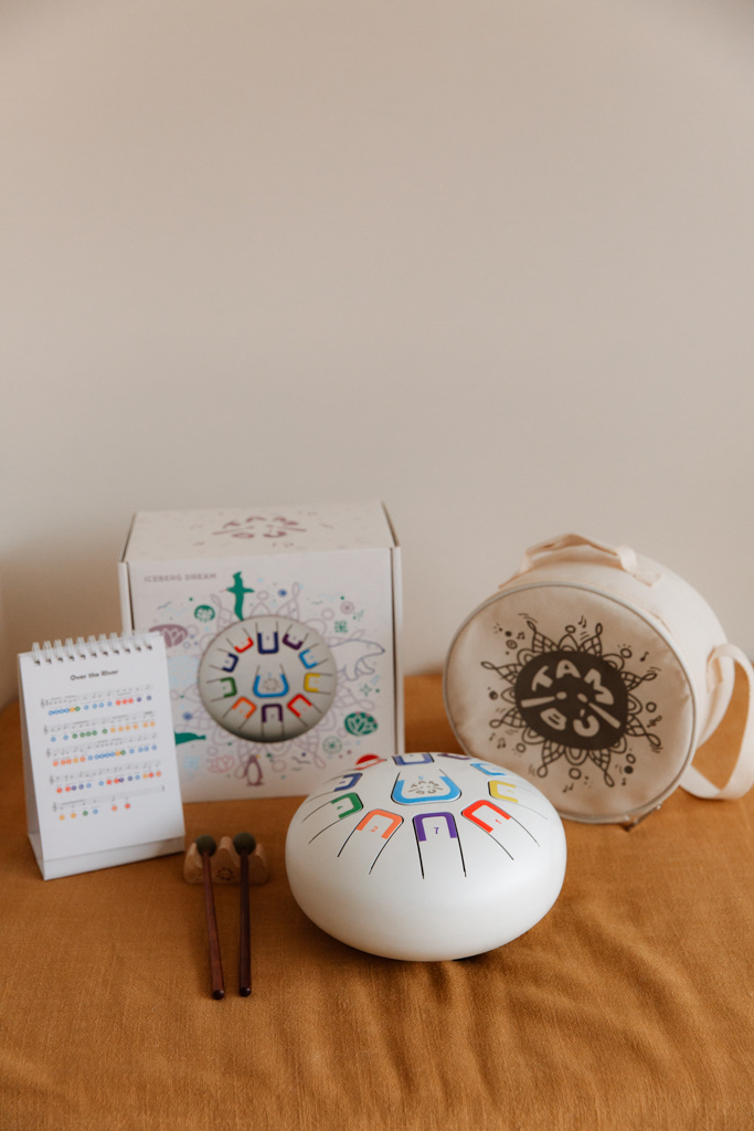 De Steel Tongue Drum is een waardevol muziekinstrument dat je laat kennismaken met de fascinerende wereld van percussie. Deze tongdrum is een soort trommel op verschillende manieren te bespelen. TAMBÚ produceert een verscheidenheid aan tonen die harmonieus op elkaar zijn afgestemd om een langdurig, rustgevend geluid te creëren. Hierdoor ontstaat een omhullende en uiterst ontspannen sfeer. Met de 11 tonen kun je geavanceerde partituren reproduceren en componeren. Elke noot is gemarkeerd met een kleur en een nummer.
