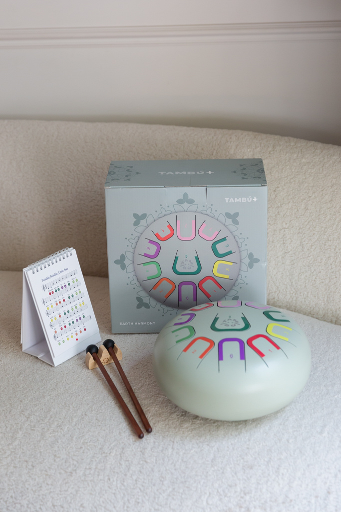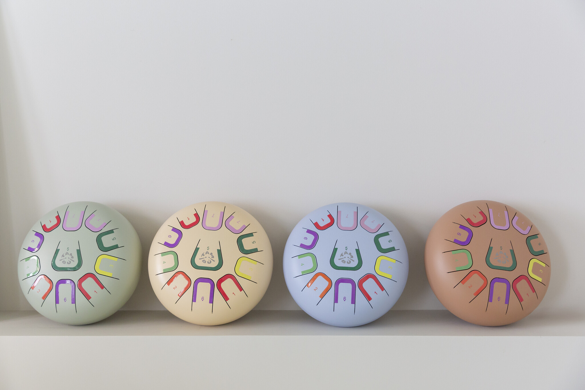 Er zijn in totaal 11 tonen met elk een eigen kleur. Inbegrepen is een aantrekkelijke draagtas en een muziekboekje dat zowel cijfers als kleuren gebruikt. De TAMBÚ produceert een verscheidenheid aan tonen die harmonieus op elkaar zijn afgestemd om een langdurig, rustgevend geluid te creëren. Hierdoor ontstaat een omhullende en uiterst ontspannen sfeer. Met de 11 tonen kun je geavanceerde partituren reproduceren en componeren. Elke noot is gemarkeerd met een kleur en een nummer. Daardoor is de Tambu juist ook geschikt om te leren muziek maken.