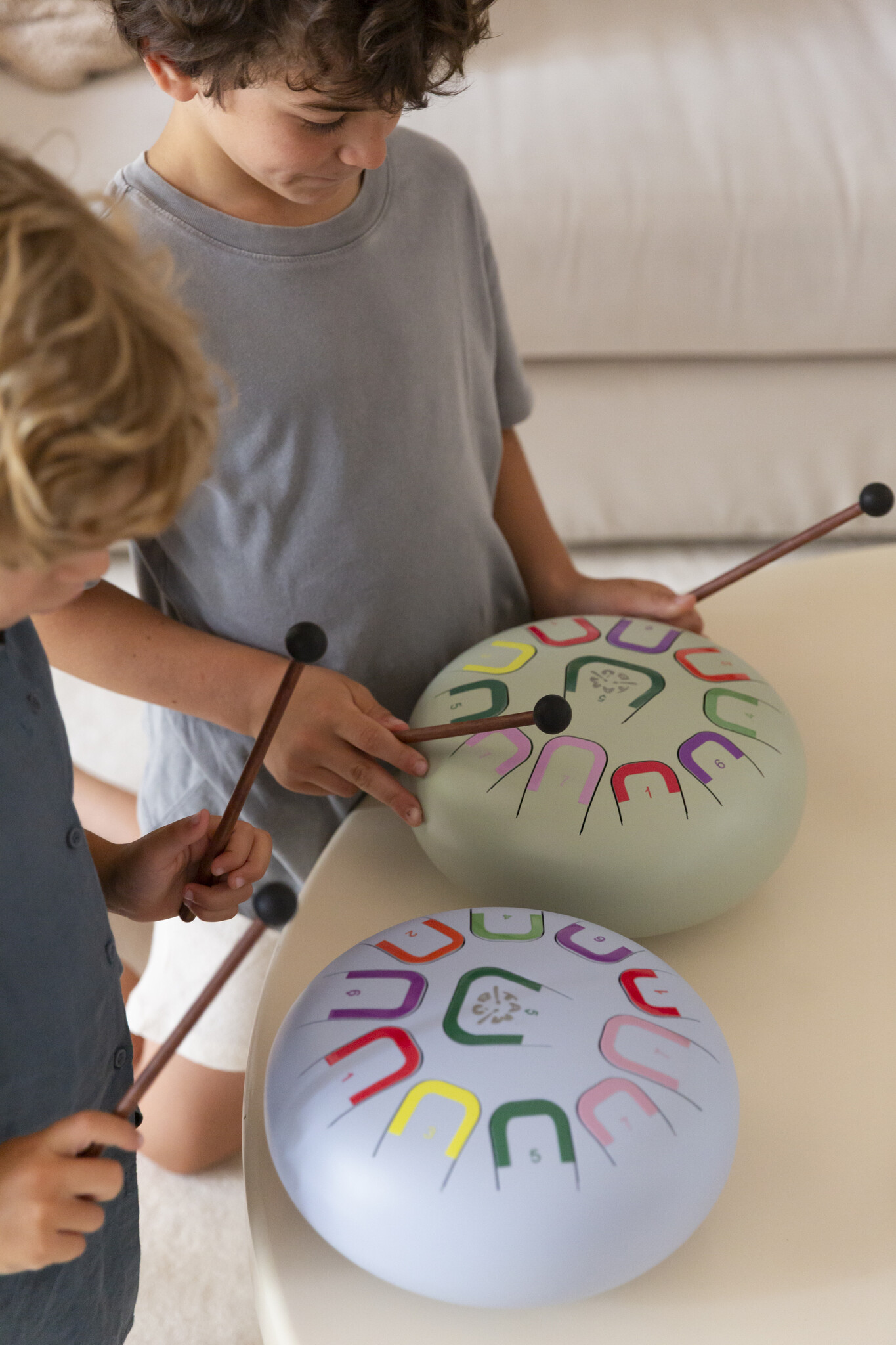 De Tambú Plus Earth Harmony is met zijn 25 centimeter doorsnede de grote broer van de klassieke Tambú.Hij heeft evenveel noten maar door het grotere formaat klinkt hij nog dieper en voller, daarmee is deze meer geschikt voor iets oudere kinderen die graag muziek maken, jongeren en volwassenen en bijvoorbeeld voor workshops etc.