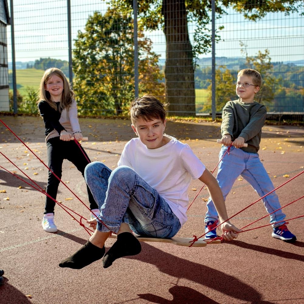 Balansspel: Draai het bord om en laat één speler plaatsnemen (of staan) op het bord, terwijl de anderen hem of haar voorzichtig optillen. Teamwork en vertrouwen zijn hierbij essentieel. Het Team Spirit balansspel is een uniek coöperatief spel voor kinderen en groepen.
