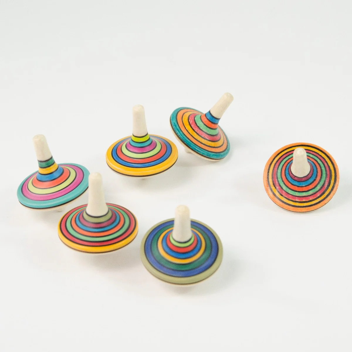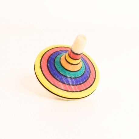 Een kleine houten tol die met moeilijkheidsgraad 1 wordt gezien als een eenvoudige tol om het tollen te leren!
