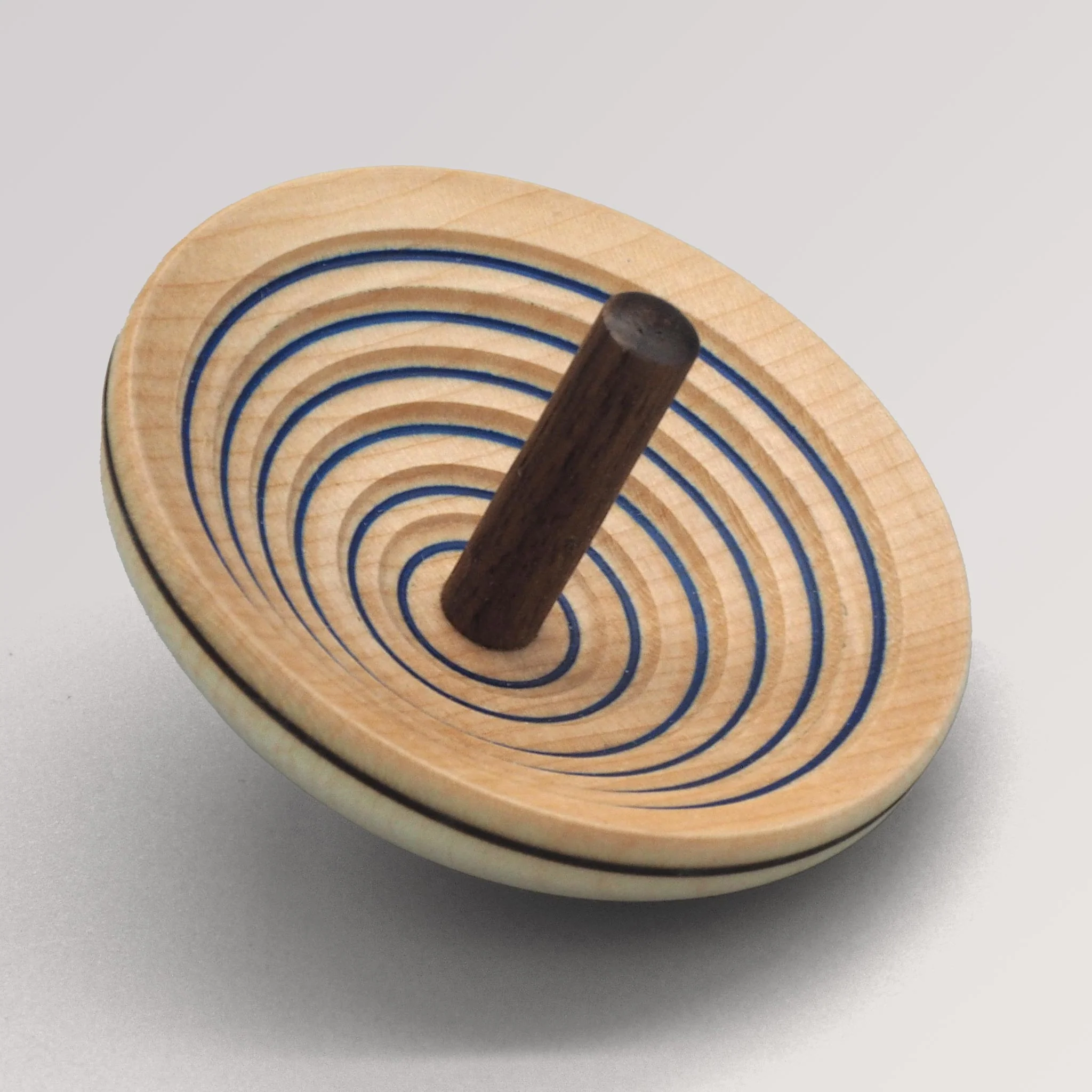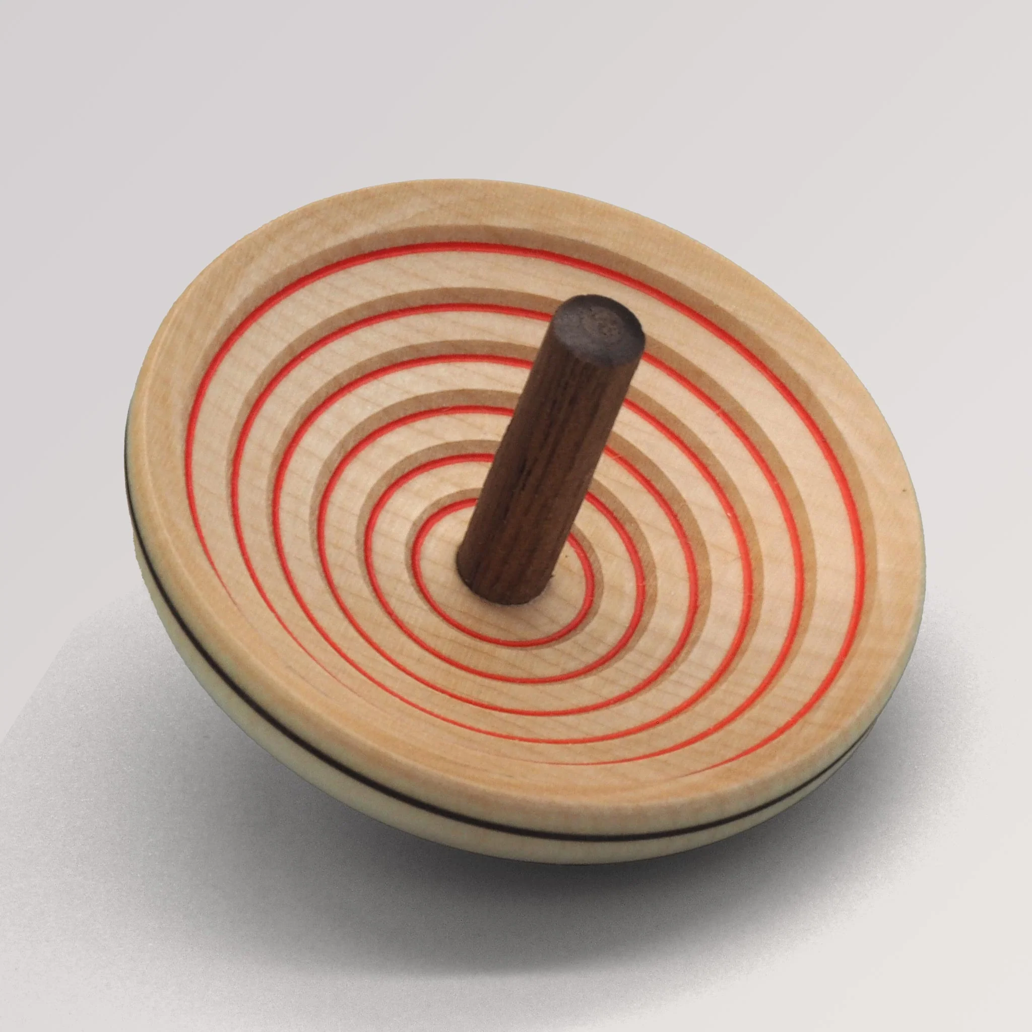Bovenhands draaien is een eeuwenoude en extreem moeilijke houtdraaitechniek, waarbij het hout ondersteboven wordt gedraaid.De UFO-tol wordt aan de binnenkant niet geschuurd; anders zouden de unieke, interne ribbels niet mogelijk zijn.Het fijne en gladde oppervlak wordt uitsluitend gecreëerd door een fijne beitel en vakkundig vakmanschap.Vanwege de moeilijkheid van de draaitechniek is de UFO-tolvorm met zijn interne ribbels uniek en exclusief voor de Mader Spinning Top Manufactory en getuigt het van het hoge niveau van vakmanschap van deze werkplaats.