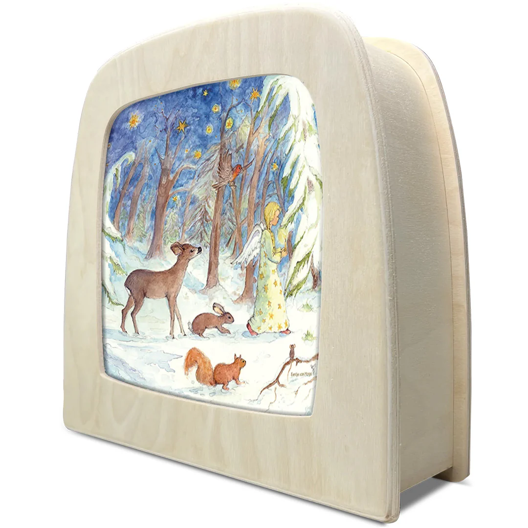 De Toverlux-lamp, Toverlamp, silhouetlamp, magische lamp of zelfs lichtwens genoemd wordt met liefde met de hand in Europa gemaakt van FSC-gecertificeerd hout. Verander per seizoen het silhouet en voeg daar veranderingen tijdens verjaardagen, voorleesmomenten en andere bijzondere gelegenheden aan toe. Zo breng je met de toverlamp het hele jaar door een warme gloed en magie in je huis, of misschien wel in peuterspeelzaal, op de BSO, of in de klas.