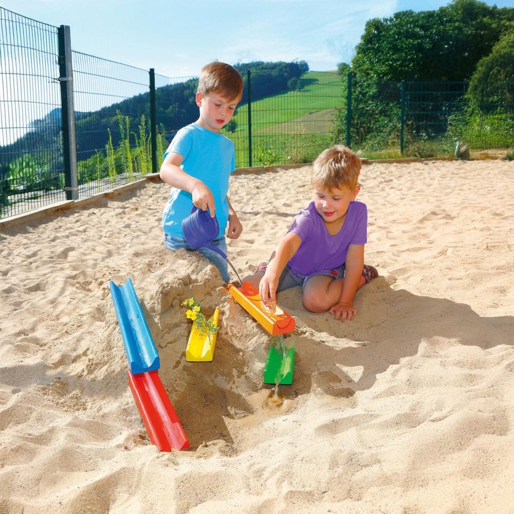 Kinderen leren met deze knikker- en waterbaan om samen te werken en van alles uit te proberen om er maar voor te zorgen dat water en knikkers (autootjes) stromen of rollen. Een obstakel zorgt voor veel leerplezier want hoe ziet dat er uit? Wat gebeurt er als je een gat dicht stopt en wat als je het (deels) blokkeert)? En hoe snel kun je samen zijn zodat water en knikkers niet van de baan afvallen? Zie het beeldmateriaal voor diverse mogelijkheden.